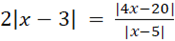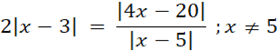 , ponieważ wyrażenie w mianowniku nie może być równe zero, gdyż nie możemy przez nie dzielić. Następnie wyciągamy 4 z wartości bezwzględnej znajdującej się w liczniku po prawej stronie równania i uproszczamy licznik i mianownik ułamka. Następnie dzielimy równanie obustronnie przez 2. Rozwiązujemy równanie, opuszczając wartość bezwzględną wyrażenia. Opuszczenie wartości bezwzględnej skutkuje rozbiciem równania na dwa przypadki. Należy pamiętać o zmianie znaku w drugim przypadku. Następnie rozwiązujemy je jak zwykłe równania. Otrzymujemy dwa rozwiązania, z czego jedno jest sprzeczna z początkowymi założeniami. Zatem równanie ma tylko jedno rozwiązanie