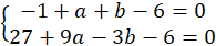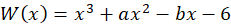 Utwórz układ równań, znając wartości wielomianu dla dwóch argumentów. Rozwiąż go wyznaczając a i b. Zauważ, że wielomian musi mieć jeszcze jeden pierwiastek, bo każdy wielomian stopnia 3 musi mieć dokładnie 3 pierwiastki.