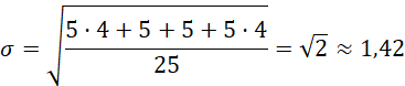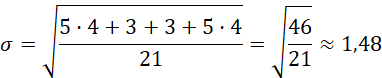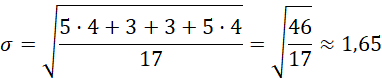 Odchylenie standardowe mierzy poziom rozproszenia danych. Tam, gdzie dane są stosunkowo bliskie sobie, odchylenie standardowe będzie niskie. Obliczamy je, sumując kwadraty wszystkich danych i dzieląc tę wartość przez ich ilość, a następnie odejmujemy od tej liczby kwadrat wartości średniej arytmetycznej tych liczb i pierwiastkujemy.