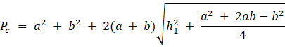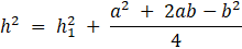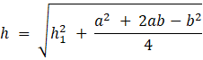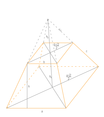 Wyznacz pole całkowite bryły przedstawionej na rysunku jeśli dolna podstawa jest stworzona z kwadratu o boku a, górna z kwadratu o boku b a jej wysokość wynosi h.