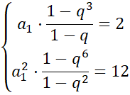 Zapisz wzór ogólny ciągu, jeśli w ciągu geometrycznym suma trzech początkowych wyrazów jest równa 2, a suma kwadratów tych wyrazów jest równa 12.