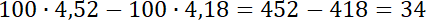Odczytaj ceny walut tego dnia, a następnie pomnóż je przez 100 i odejmij od siebie.