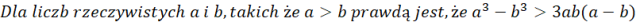 Dowód przeprowadzamy poprzez przeniesienie wszystkich wyrazów na lewą stronę, następnie wymnożeniu nawiasu i zauważeniu, że prawa strona nierówności to wzór skróconego mnożenia, sześcian różnicy. Równoważnie otrzymaliśmy równość