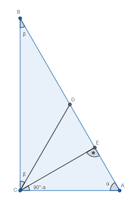 Musisz udowodnić podaną zależność kątów w trójkącie prostokątnym.
