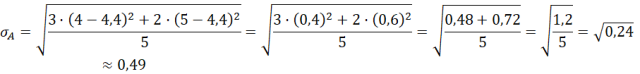 Odchylenie standardowe mierzy poziom rozproszenia danych. Tam, gdzie dane są stosunkowo bliskie sobie, odchylenie standardowe będzie niskie. Obliczamy je, sumując kwadraty wszystkich danych i dzieląc tę wartość przez ich ilość, a następnie odejmujemy od tej liczby kwadrat wartości średniej arytmetycznej tych liczb i pierwiastkujemy.
