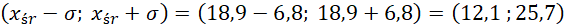 Korzystamy z wyliczonej w poprzednim podpunkcie średniej arytmetycznej i odchylenia standardowego. Liczymy, ile województw należy do przedziału.