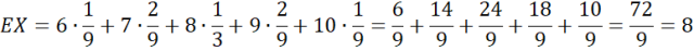 Wyznacz wartość oczekiwaną zmiennej X, jeśli losujemy ze zwracaniem spośród liczb 3, 4 i 5 losujemy dwie, a zmienna losowa X przyporządkowuje każdej parze liczb jej sumę.