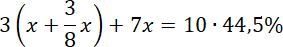 Zmieszano roztwory z oby słoików i otrzymano roztwór o stężeniu 44,5%. W pierwszym słoiku było 3 l płynu, a w drugim 7 l, czyli roztwór po zmieszaniu miał 10 litrów.