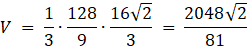 . Krawędź boczna wynosi 8. Znajdź pole powierzchni i objętość.