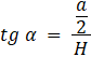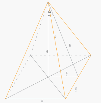 Dany jest ostrosłup prawidłowy czworokątny gdzie wysokość ostrosłupa i wysokość ściany bocznej tworzą kąt α dla którego tangens wynosi