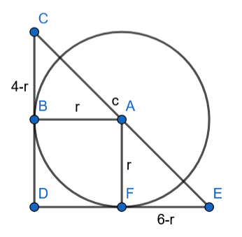 Wyznacz promień okręgu stycznego do obu przyprostokątnych, którego środek należy do przeciwprostokątnej, jeśli przyprostokątne trójkąta prostokątnego mają długości 4 cm i 6 cm.