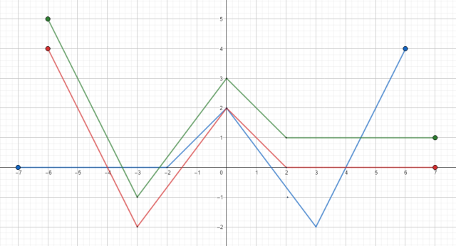 Najpierw na funkcje y=f(x) (kolor niebieski) zadziałaj symetrią względem osi y, a następnie funkcje y=f(-x) (kolor czerwony) przesuń o jedną jednostkę do góry.