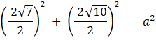 Zauważ, że w rombie przekątne przecinają się w połowie pod kątem 90°, więc tworzą 4 trójkąty o przyprostokątnych równych połowom przekątnych. Stosując twierdzenie Pitagorasa, można wyznaczyć, że bo a rombu ma długość: