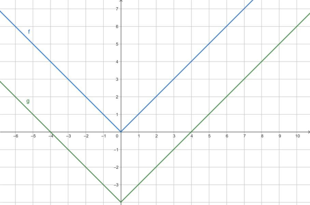 Żeby narysować wykres funkcji g, musisz narysować najpierw zwykłą funkcję |x| i przesunąć ją o 4 jednostki w dół.