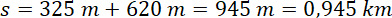 Pociąg pasażerski ma długość 325 m, a towarowy 620 m. Aby się minąć, musiały pokonać drogę odpowiadającą sumie ich długości:
