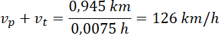 Prędkość, z jaką pociągi się mijały, jest sumą prędkości obu pociągów, to znaczy: