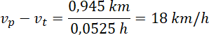 Prędkość wyprzedzania jest równa różnicy prędkości pociągów, czyli: