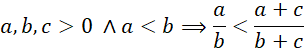 Dowód naszej tezy przeprowadzamy poprzez przemnożenie obu stron na krzyż, wolno nam, gdyż zgodnie z założeniami podanymi w treści zdania mianowniki są dodatnie. Następnie wymnażamy nawiasy i redukujemy wyrazy podobne dochodzimy do równoważnej nierówności