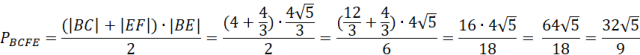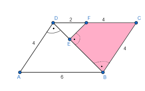 Przyjmij oznaczenia jak na rysunku. Wiadomo, że trójkąty BCD i EFD są prostokątne i mają wspólny kąt przy wierzchołku D, czyli są podobne. Wyznacz ich skalę podobieństwa. Wyznacz długość |DB| z twierdzenia Pitagorasa. Kolejno wyznacz długość odcinka ED. Następnie długości odcinków BE i EF. Na koniec oblicz pole trapezu BCFE.