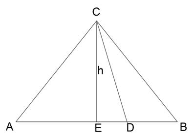 Trójkąt jest równoramienny, więc wysokość dzieli go na dwa przystające trójkąty prostokątne CAE i CEB.