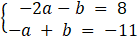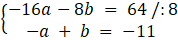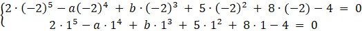 Podstaw za x liczby -2 i rozwiąż układ równań.