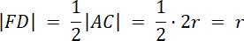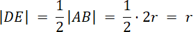 Trójkąt ABC jest równoboczny – jego bok ma długość 2r. Punkty DEF są środkami boków. Wówczas