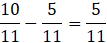 Aby znaleźć różnicę dwóch ułamków o tych samych mianownikach, odejmij liczniki, a mianownik pozostaw bez zmian. Jeśli liczby są mieszane, to odejmij od siebie części całkowite i części ułamkowe odejmij w taki sam sposób. Pamiętaj o zamienianiu ułamków na nieskracalne.