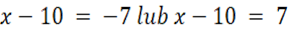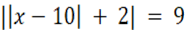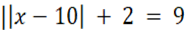 Na początku opuszczamy pierwszą wartość bezwzględną bez konsekwencji rozbijania równania na dwa kolejne równania. Dzieje się tak, ponieważ, każde wyrażenie wewnątrz wartości bezwzględnej jest nieujemne. Następnie przenosimy wartości liczbowe na prawą stronę równania oraz opuszczamy kolejną wartość bezwzględną, otrzymując dwa równania, które rozwiązujemy i otrzymujemy dwa rozwiązania.