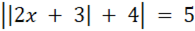 Na początku opuszczamy pierwszą wartość bezwzględną bez konsekwencji rozbijania równania na dwa kolejne równania. Dzieje się tak, ponieważ, każde wyrażenie wewnątrz wartości bezwzględnej jest nieujemne. Następnie przenosimy wartości liczbowe na prawą stronę równania oraz opuszczamy kolejną wartość bezwzględną, otrzymując dwa równania, które rozwiązujemy i otrzymujemy dwa rozwiązania.