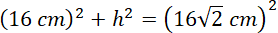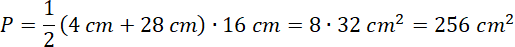Oblicz wysokość trapezu, korzystając z twierdzenia Pitagorasa dla trójkąta którego przeciwprostokątną jest przekątna trapezu, jedną z przyprostokątnych wysokość trapezu, a drugą fragment podstawy równy 28 cm – 12 cm