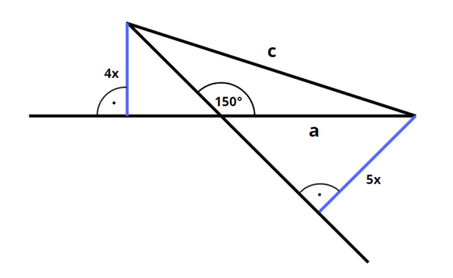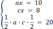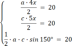 Zapisz wzory opisujące pole trójkąta na trzy różne sposoby, następnie rozwiąż układ równań złożony z zapisanych równań.