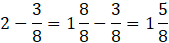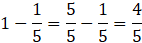 Aby odjąć ułamek właściwy od liczby naturalnej, zmniejsz liczbę o jeden i dodaj do niej ułamek o mianowniku i liczniku równym mianownikowi odjemnika. Następnie odejmij dwie otrzymane liczby.