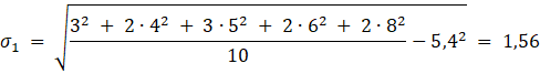 Napisz słownie liczby od 1 do 10 i wyznacz średnią arytmetyczną i odchylenie standardowe długości wyrazów.