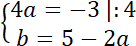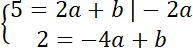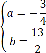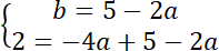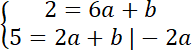 Stwórz układ równań, aby wyznaczyć a i b: