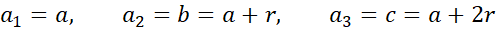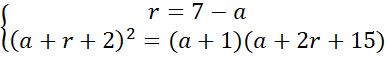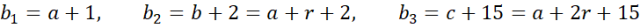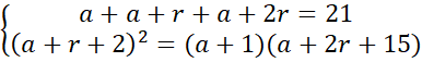 Wyznacz trzy liczby, dla których suma liczb tworzących ciąg arytmetyczny jest równa 21 i jeśli do pierwszej liczby dodamy 1, do drugiej 2, a do trzeciej 15, to otrzymamy ciąg geometryczny.