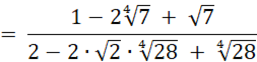 Aby móc wykonać działania na pierwiastkach muszą być one tego samego stopnia. Na początku podnosimy wyrażenie w mianowniku zgodnie ze wzorem na kwadrat różnicy. Następnie korzystamy z
