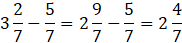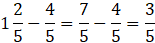 Aby odjąć ułamek od liczby mieszanej o mniejszym liczniku, zmniejsz część całkowitą tej liczby o 1, a do części ułamkowej dodaj ułamek o liczniku i mianowniku równym mianownikowi części ułamkowej.