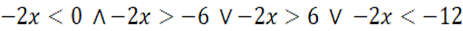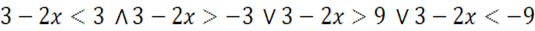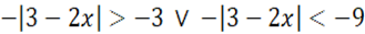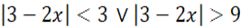 . Ma to znaczenie przy zapisywaniu przedziału będącym rozwiązaniem nierówności. Spójnik „i” mówi, że odpowiedzią jest część wspólna przedziałów wyznaczonych przez nierówności. Przenosimy wartości liczbowe na prawą stronę nierówności i mnożymy każdą z nierówności przez -1 zmieniając tym samym znak nierówności na przeciwny. Ponownie opuszczamy wartość bezwzględną, dzieląc każda nierówność na dwie osobne nierówności. Przenosimy wartości liczbowe na prawą stronę i rozwiązujemy cztery proste nierówności. Następnie bierzemy jako rozwiązanie sumę przedziałów.