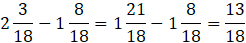 Aby odjąć liczbę mieszaną od liczby mieszanej o mniejszym liczniku, zmniejsz część całkowitą odjemnej o jeden i dodaj do niej ułamek o mianowniku i liczniku równym mianownikowi odjemnika. Następnie odejmij dwie otrzymane liczby.