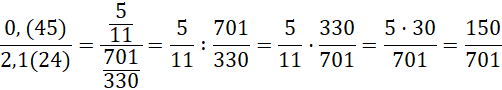 Przedstaw najpierw oba ułamki dziesiętne okresowe postaci ułamków zwykłych. Skorzystaj z metody zamiany okresowych ułamków dziesiętnych na ułamki zwykłe. Zrób to poprzez oznaczenie ułamka dziesiętnego jako x, potem pomnożeniu obu stron ułamka przez