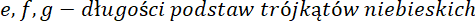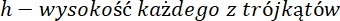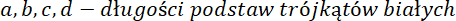 Zapisz pole trójkątów niebieskich i białych za pomocą długości podstaw oraz wspólnej wysokości. Zauważ, że zachodzi równość między długościami podstaw trójkąta