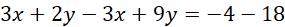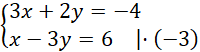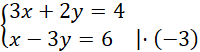 Nie ma współczynników o przeciwnych znakach, więc przekształcamy układ równań tak, by do takiej sytuacji dochodziło:
