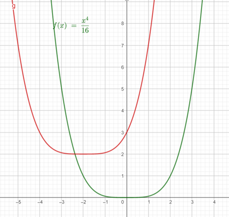 Analizując wykres, możemy zauważyć, że został on przesunięty o 2 jednostki do góry oraz o 2 jednostki w lewo. Zgodne z zasadami przekształcania wykresów, wektor przesunięcia