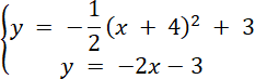 Odczytaj z rysunku współrzędne wierzchołka paraboli oraz współrzędne punktu, który należy do niej. Oblicz współczynnik kierunkowy i zapisz równanie paraboli. Następnie, aby wyznaczyć równanie prostej, skorzystaj z współrzędnych punktów, które należą do tej prostej. Wyznacz równanie używając wzoru. Wyznacz punkty wspólne tworząc układ równań z tymi dwoma równaniami i rozwiązując go.