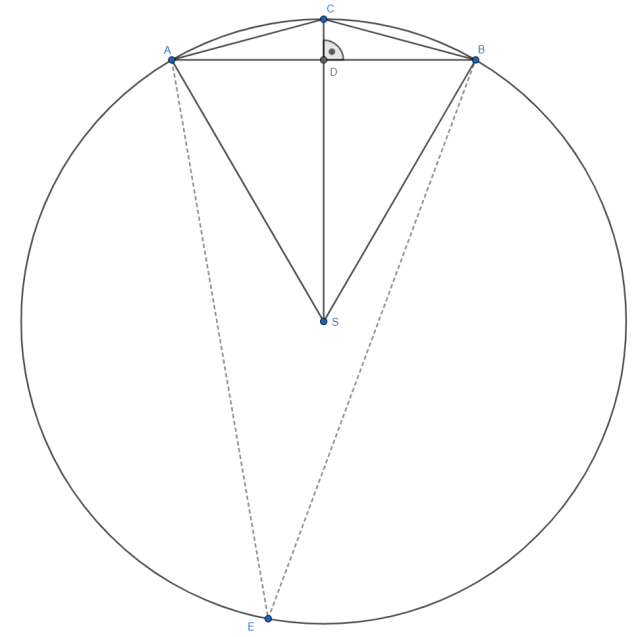 Trójkąty ACS i BCS są równoramienne o ramionach równych promieniowi okręgu, więc: