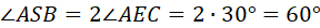 Kąt ASB jest kątem środkowym opartym na tym samym łuku co kąt wpisany AEB: