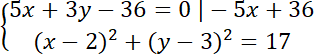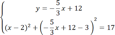 Najpierw wyznacz punkty wspólne prostej z okręgiem: