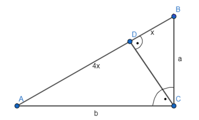 Zacznij od narysowania rysunku pomocniczego. Wyznacz długość x. Z cechy kkk trójkąt CBD jest podobny do trójkąta ABC (wspólny kąt przy wierzchołku B i kąt prosty). Wyznacz długość a. Z cechy kkk trójkąt ACD jest podobny do trójkąta ABC (wspólny kąt przy wierzchołku A i kąt prosty). Wyznacz długość a. Na koniec oblicz obwód trójkąta ABC.