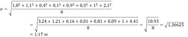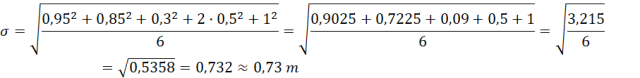 Odchylenie standardowe mierzy poziom rozproszenia danych. Tam, gdzie dane są stosunkowo bliskie sobie, odchylenie standardowe będzie niskie. Obliczamy je, sumując kwadraty wszystkich danych i dzieląc tę wartość przez ich ilość, a następnie odejmujemy od tej liczby kwadrat wartości średniej arytmetycznej tych liczb i pierwiastkujemy.