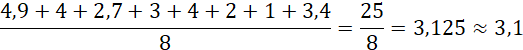 4,9 ; 4 ; 2,7 ; 3 ; 4 ; 2 ; 1 ; 3,4